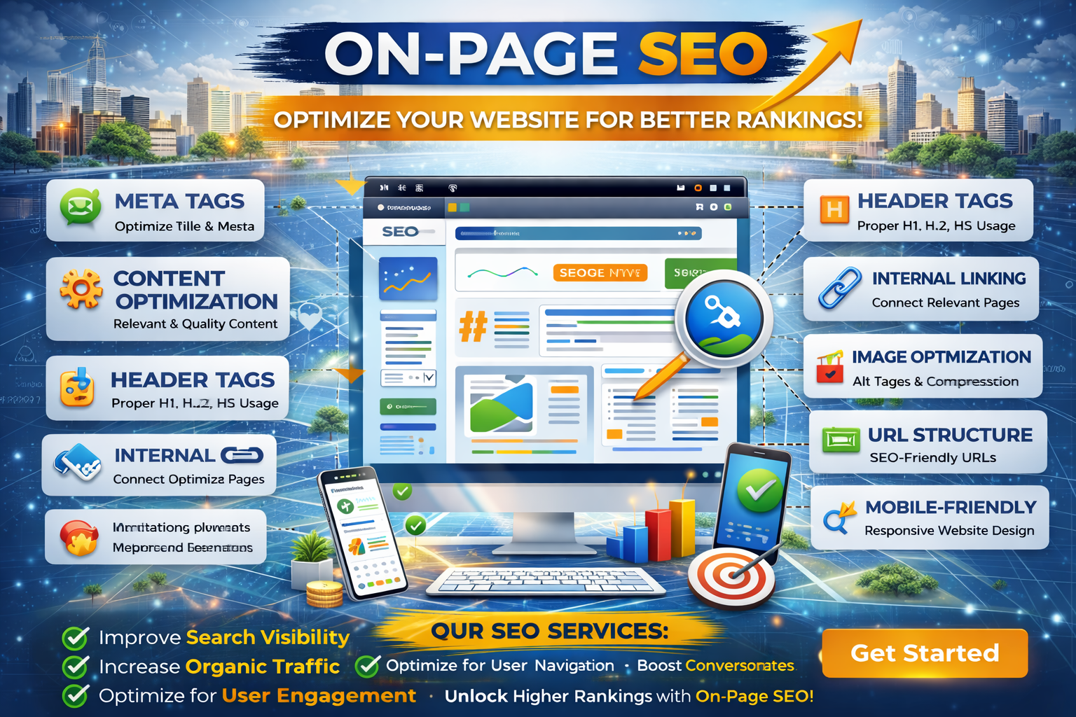 Web Vyapar Solution Pvt. Ltd. provides professional On Page SEO Services to optimize your website structure, content, and technical elements for higher Google rankings. Our expert team ensures that every page of your website is fully optimized with the right keywords, meta tags, headings, and internal linking structure to improve visibility and user experience.