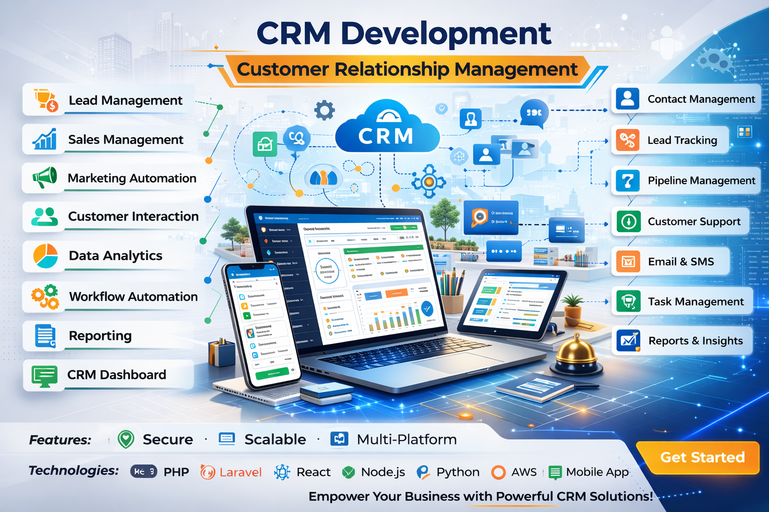 We develop secure, scalable, and cloud-based CRM systems tailored to your business needs. Whether you need a simple lead tracking system or a complete enterprise CRM solution, we deliver powerful and user-friendly software with advanced automation features.