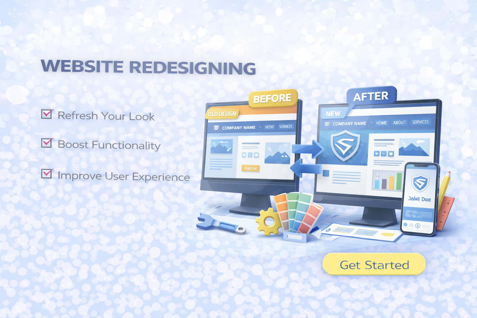 Web Vyapar Solution Private Limited offers professional Website Redesigning Services to upgrade your existing website with a modern look, better performance, and improved user experience. If your website looks outdated, loads slowly, or is not generating leads, itβs time for a redesign.